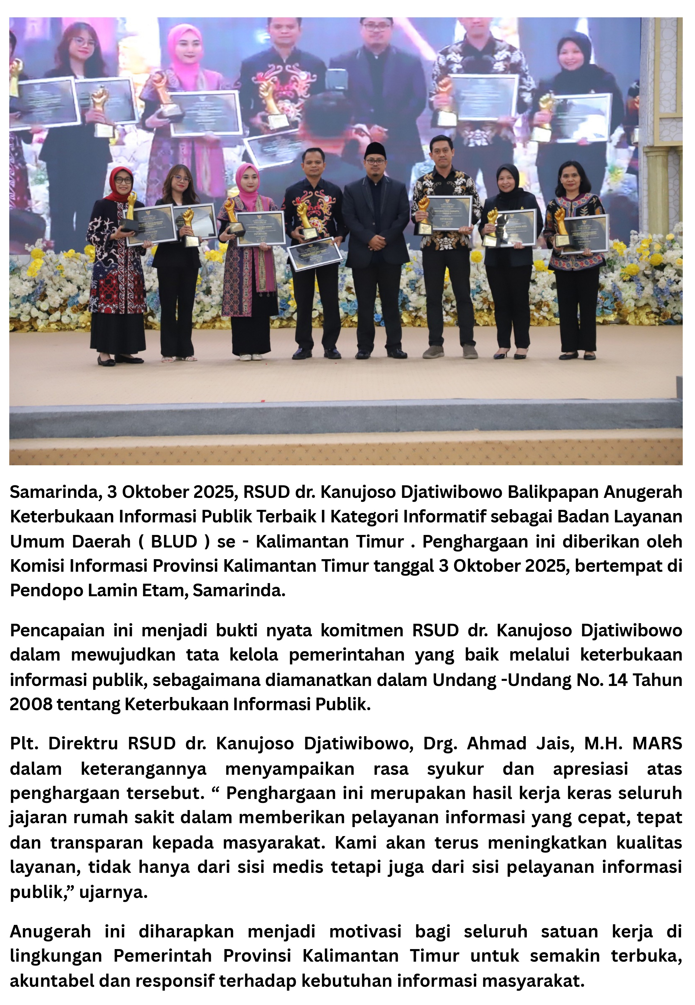 Penghargaan Terbaik I Keterbukaan Informasi Publik Tahun 2025, Kategori Badan Layanan Umum ( BLUD ) Informatif se - Kalimantan Timur