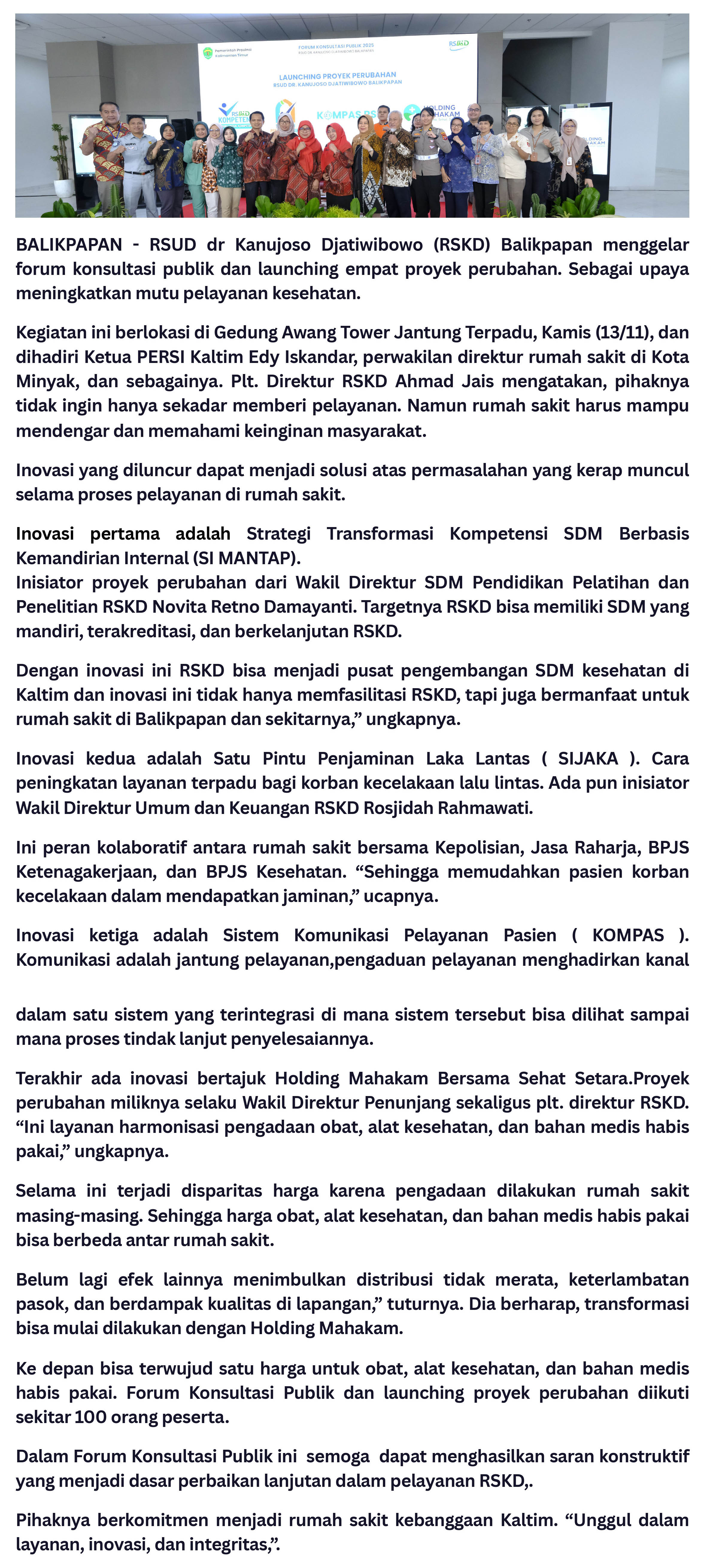 Penghargaan Terbaik I Keterbukaan Informasi Publik Tahun 2025, Kategori Badan Layanan Umum ( BLUD ) Informatif se - Kalimantan Timur